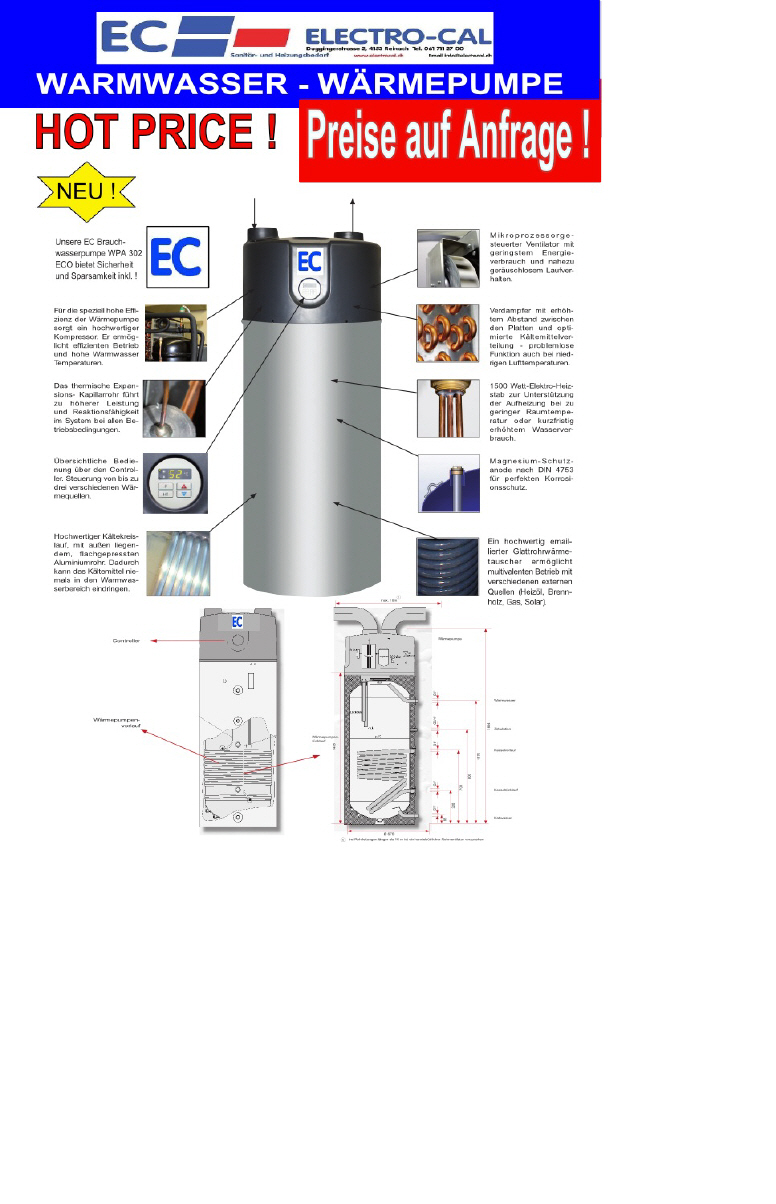 Da unten finden Sie unser neuen Wärmepumpe Boiler der Electro-Cal AG