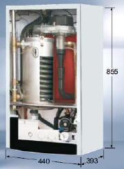 Gas-Brennwertthermen für raumluftabhängige und raumluftunabhängige Betriebsweise. Vormischbrenner für Erdgas und/oder für Flüssiggas, automatische Luftzahlanpassung an Abgassystem und modulierend geregelte Leistung im Heiz- und Speicherladebetrieb. Hoher Normnutzungsgrad bis 109%. Bis 25kW ist das Ausdehnungsgefäss eingebaut und vereinfacht die Montage. Die Wartung ist durch den schwenkbaren Wärmetauscher unter Systemdruck sehr vereinfacht.
